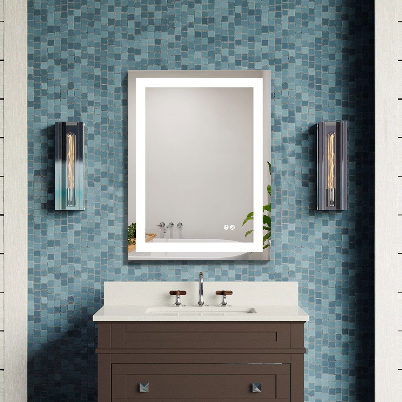 The bathroom mirror with LED light; Made of high qualit Anodized aluminum can be used for long time. High tech Intelligent bathroom vanity makeup mirror with defogging function. Touch sensor button can adjustable mirror color brightness from 2700K-6300K to meet the needs of different light. Brightness can be adjusted freely from 10 % to 100%. Large size bathroom mirrors wall mounted design; it is space-saving. Bright mirror can make your bathroom or living room can be more spacious; Better mood. Perfect for bathroom; bedroom; dressroom; powder room and more.