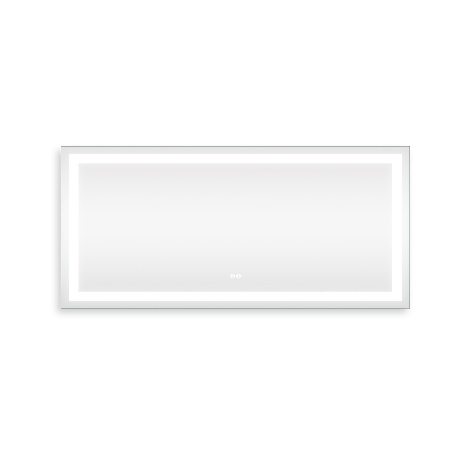 The bathroom mirror with LED light; Made of high qualit Anodized aluminum can be used for long time. High tech Intelligent bathroom vanity makeup mirror with defogging function. Touch sensor button can adjustable mirror color brightness from 2700K-6300K to meet the needs of different light. Brightness can be adjusted freely from 10 % to 100%. Large size bathroom mirrors wall mounted design; it is space-saving. Bright mirror can make your bathroom or living room can be more spacious; Better mood. Perfect for bathroom; bedroom; dressroom; powder room and more.