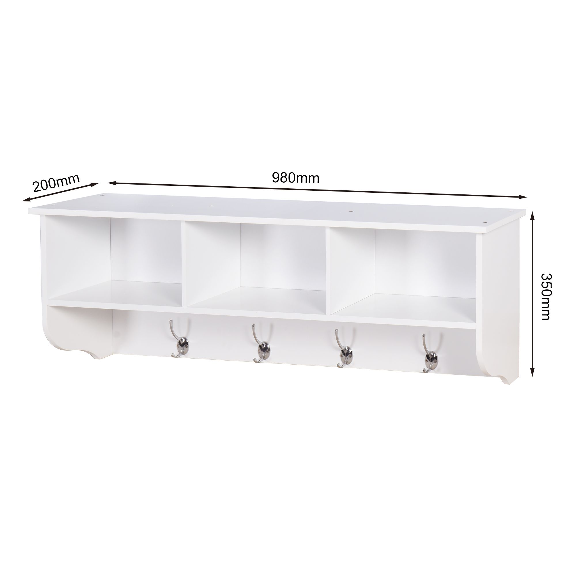 White Entryway Wall Mounted Coat Rack with 4 Dual Hooks Living Room Wooden Storage Shelf