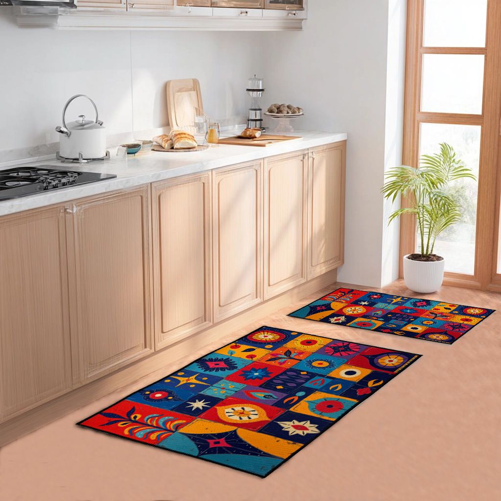 1.Printed Absorbent & Non-Slip Door Mat - Durable Polyester Carpet with "Kitchen" Design, Ideal for Bathrooms, Hallways, Living Rooms, Bedrooms (Decorative Use) & Laundry Rooms (Heavy-Duty Floor Mat)