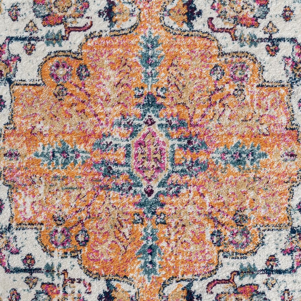 Bring a striking color and style to your home with the Madison Park Mateo Boho Medallion Multi Woven Area Rug. Made in Turkey, this area rug features a boho-inspired medallion pattern in shades of orange and blue creating a vibrant globally inspired look. The soft, medium pile makes the woven rug well suited for high traffic areas, while the transparent sprayed latex reverse helps keep the rug from sliding. A rug pad is still highly recommended to keep the rug in place. Stain and fade resistant, this woven area rug is OEKO-TEX certified, meaning it does not contain any harmful substances or chemicals to ensure quality comfort and wellness. Rug is available in multiple sizes, which makes it perfect for your living room, family room, or entryways. To clean, use a vacuum or spot clean.