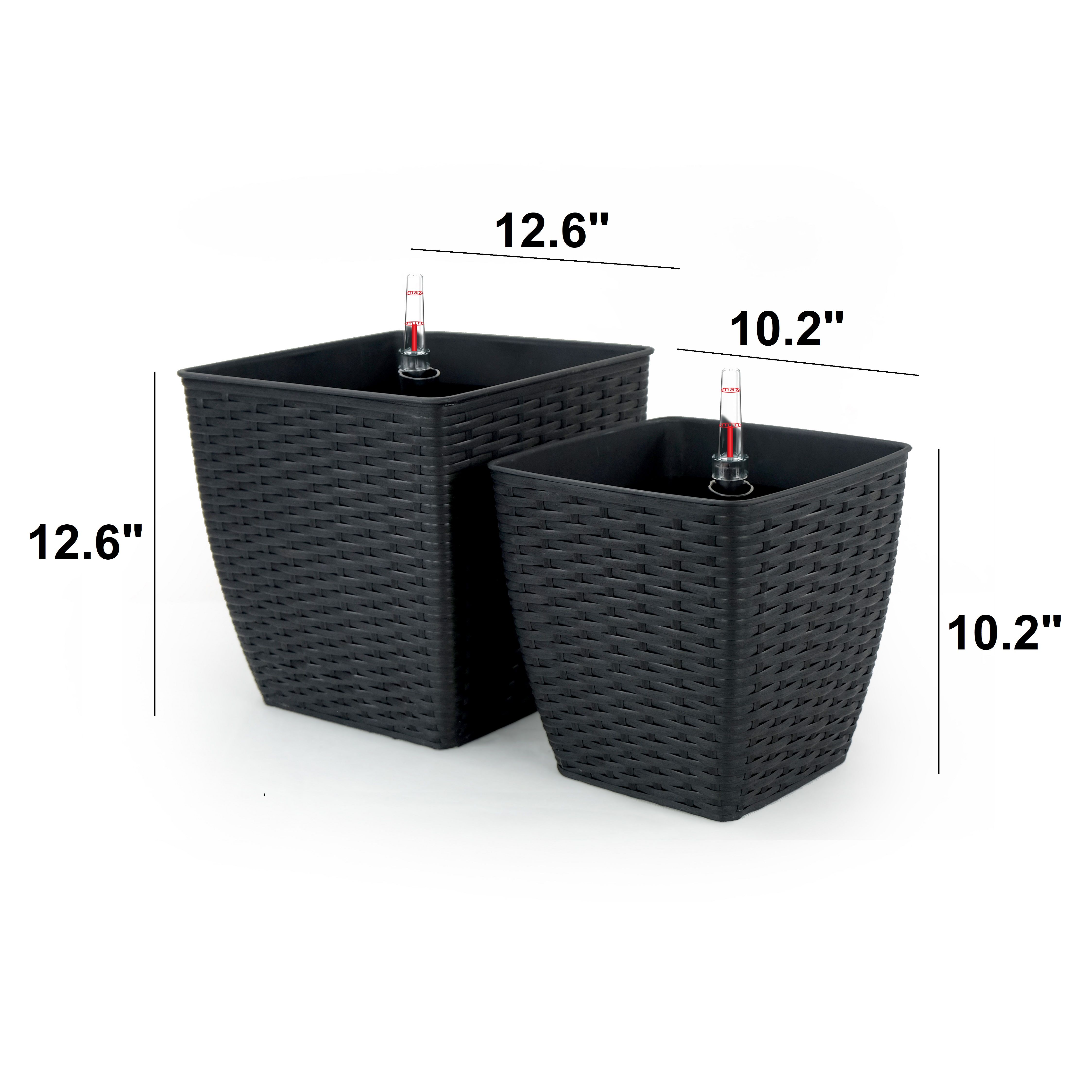 2-Pack Self-watering Planter - Hand Woven Wicker - Thin Square - Dark Gray 2-Pack Self-watering Planter - Hand Woven Wicker - Thin Square - Dark Gray 2-Pack Self-watering Planter - Hand Woven Wicker - Thin Square - Dark Gray