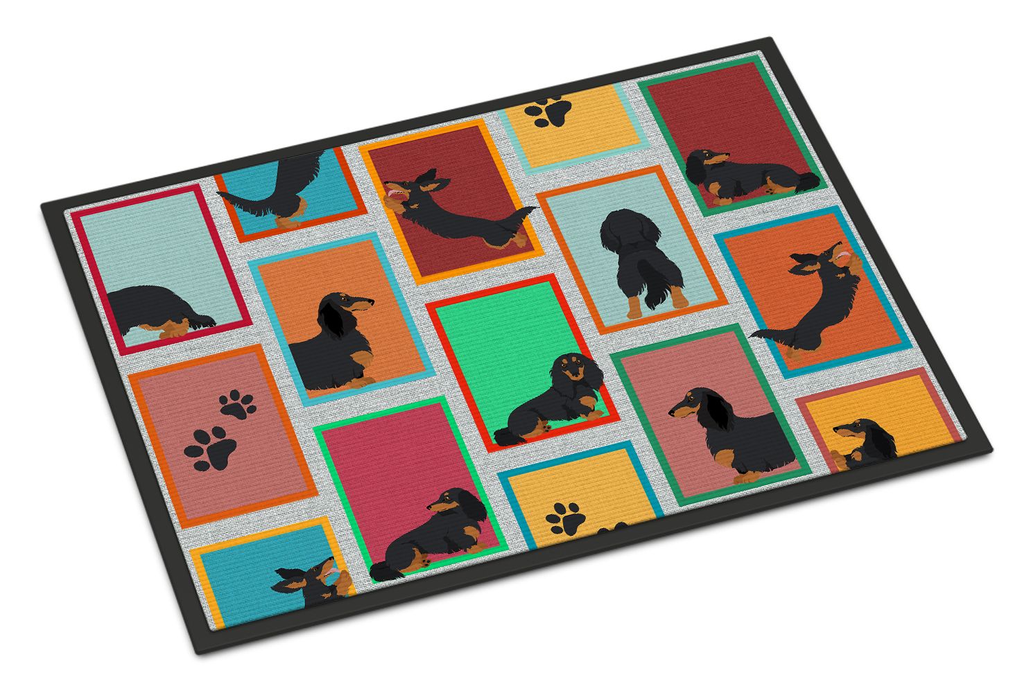 Home > NEW Lots of Longhaired Black Tan Dachshund Doormat Front Door Mat Indoor Outdoor Rugs for Entryway, Non Slip Washable Low Pile, 18H X 27W