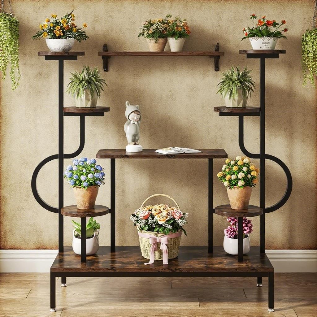 High-Quality Materials: Crafted with a superior iron frame and natural wood boards, this heavy-duty rectangular flower shelf with round plant tower shelves is built to last. The sturdy construction ensures that the multi-level indoor plant organizer can support even your heaviest potted plants, while the rust-resistant coating protects it from the elements and other wear and tear.