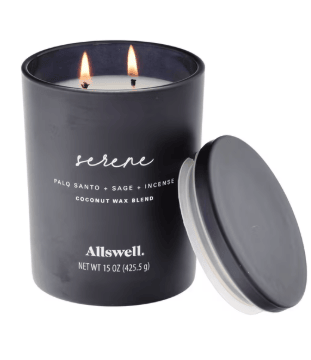 Set a soothing tone in your space with the Allswell Serene 2-Wick Spa Jar Candle. This 15-ounce candle is infused with an aromatic blend of palo santo, sage, and incense, creating a grounding fragrance ideal for relaxation or mindful moments. Housed in an elegant frosted glass jar, the candle features two cotton wicks for a cleaner, more even burn. Made with a premium wax blend, it offers up to 50 hours of comforting fragrance, making it a beautiful addition to any bedroom, bathroom, or living area.