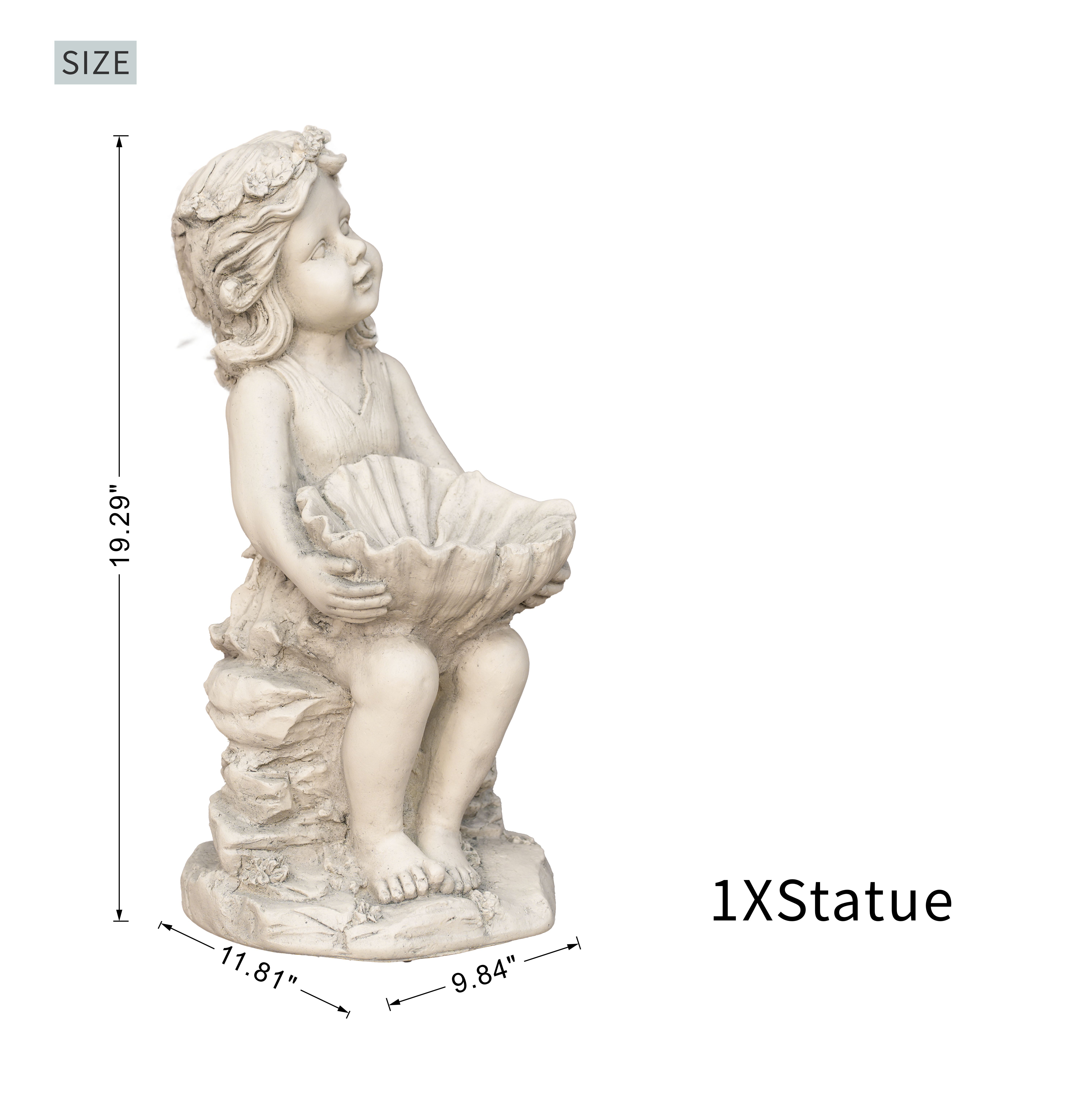 Enhance your garden or home dcor with this beautifully crafted sculpture of a young girl holding a delicate shell. Made from high-quality magnesium oxide, this piece features a smooth, burr-free surface with intricate detailing that captures the innocence and elegance of the design. Its durable, fire-resistant, and weatherproof construction makes it ideal for both indoor and outdoor use, adding a timeless charm to any setting.