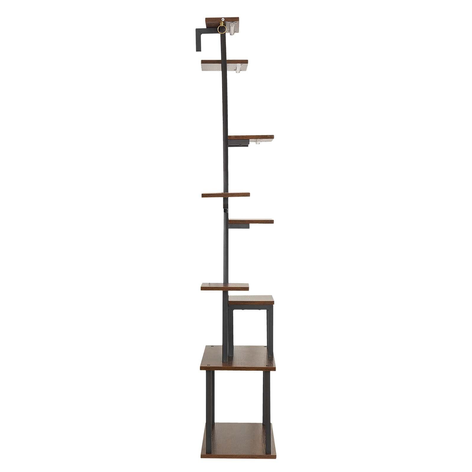 1.9-Tier Indoor Plant Stand: Standing 63" tall with 9 shelves & 2 hooks, this plant stand offers ample room to showcase multiple plants. Some tiers are wide enough to hold two pots.