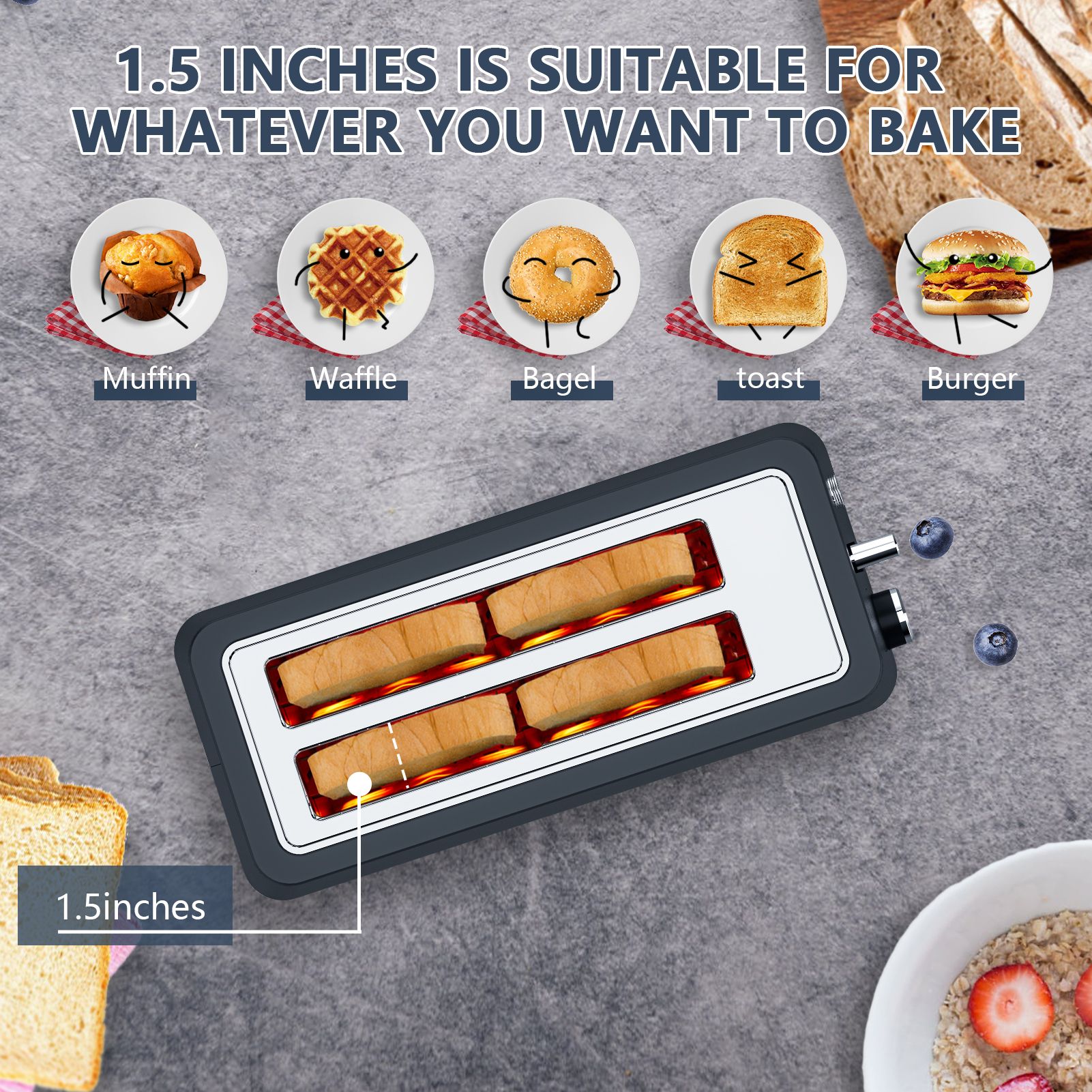 4-Slice Toaster, Extra Wide Long Slot Toaster, 6 Browning Settings, Bagel/Defrost/Reheat Functions, Removable Crumb Tray, Stainless Steel Housing