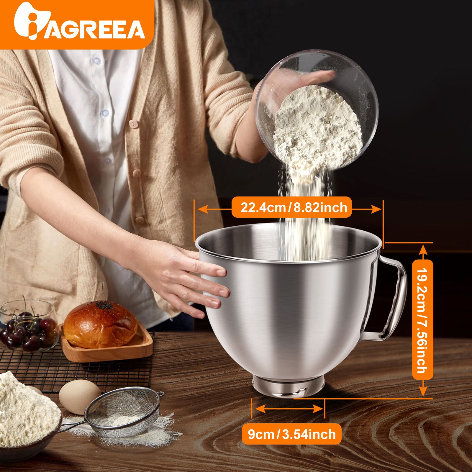 1.Make your cooking easier: IAGREEA 5QT's standard capacity mixing bowl will complement your cooking and make cooking easier.